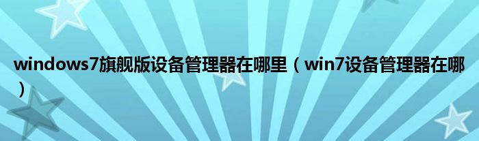 windows7旗舰版设备管理器在哪里(win7设备管理器在哪)