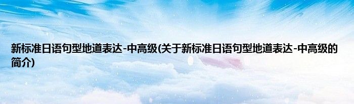 本文关于新标准日语句型地道表达-中高级的简介就讲解完毕,希望对大家有所帮助。