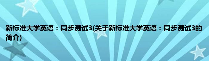 大家好,新标准大学英语:同步测试3,关于新标准大学英语:同步测试3的简介很多人还不知道,现在让我们一起来看看吧!