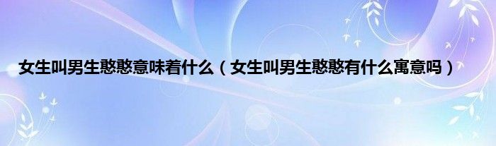 大家好,小科来为大家解答以上问题。女生叫男生憨憨意味着什么,女生叫男生憨憨有什么寓意吗很多人还不知道,现在让我们一起来看看吧!