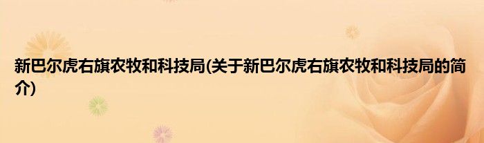 大家好,新巴尔虎右旗农牧和科技局,关于新巴尔虎右旗农牧和科技局的简介很多人还不知道,现在让我们一起来看看吧!