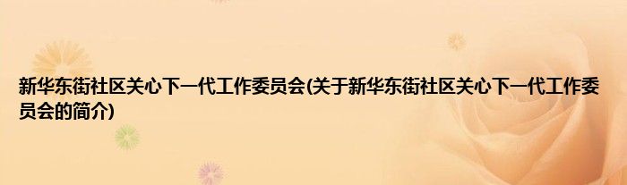 新华东街社区关心下一代工作委员会(关于新华东街社区关心下一代工作委员会的简介)