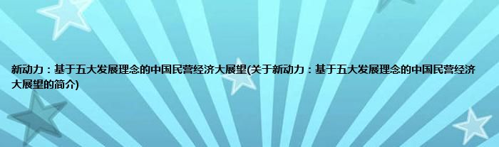 本文关于新动力:基于五大发展理念的中国民营经济大展望的简介就讲解完毕,希望对大家有所帮助。