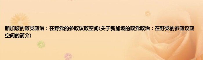 大家好,新加坡的政党政治:在野党的参政议政空间,关于新加坡的政党政治:在野党的参政议政空间的简介很多人还不知道,现在让我们一起来看看吧!