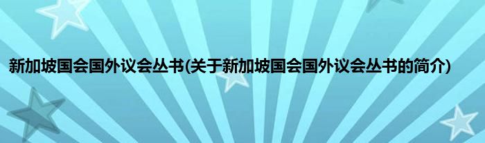 本文关于新加坡国会国外议会丛书的简介就讲解完毕,希望对大家有所帮助。