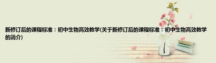 1、 《新修订后的课程标准:初中生物高效教学》内容简介:为贯彻落实《国家中长期教育改革和发展规划纲要(2010—2020年)》,适应新时期全面实施素质教育的要求,深化基础教育课程改革,提高教育质量,教育部组织专家对义务教育各学科课程标准进行了修订完善。
