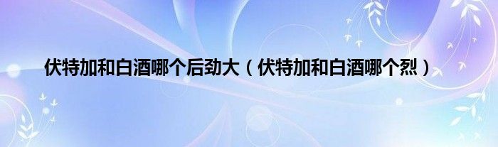 大家好,小科来为大家解答以上问题。伏特加和白酒哪个后劲大,伏特加和白酒哪个烈很多人还不知道,现在让我们一起来看看吧!