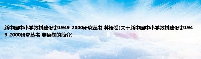 1、 《新中国中小学教材建设史1949-2000研究丛书(英语卷)》是2010年人民教育出版社出版的图书。