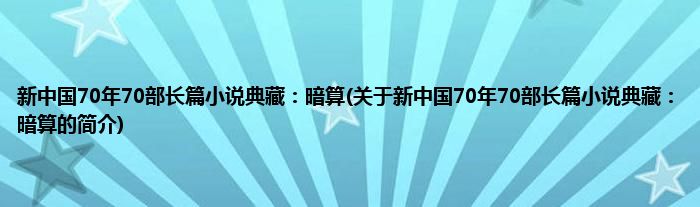 本文关于新中国70年70部长篇小说典藏:暗算的简介就讲解完毕,希望对大家有所帮助。