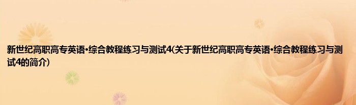 大家好,新世纪高职高专英语·综合教程练习与测试4,关于新世纪高职高专英语·综合教程练习与测试4的简介很多人还不知道,现在让我们一起来看看吧!