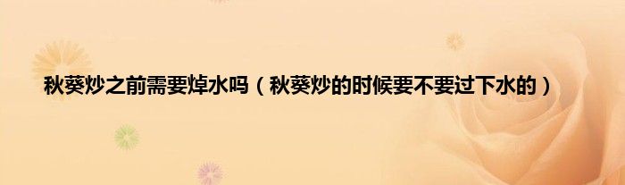 一、 秋葵炒之前需要焯水吗