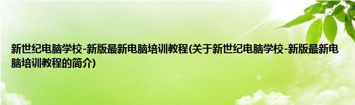 本文关于新世纪电脑学校-新版最新电脑培训教程的简介就讲解完毕,希望对大家有所帮助。