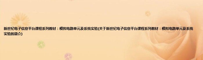 本文关于新世纪电子信息平台课程系列教材:模拟电路单元及系统实验的简介就讲解完毕,希望对大家有所帮助。