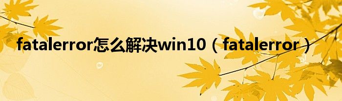 大家好,精选小编来为大家解答以上问题。fatalerror怎么解决win10,fatalerror很多人还不知道,现在让我们一起来看看吧!