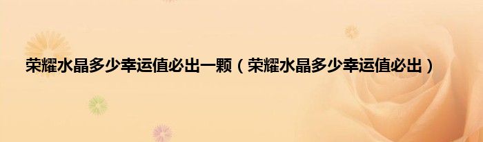 大家好,精选小编来为大家解答以上问题。荣耀水晶多少幸运值必出一颗,荣耀水晶多少幸运值必出很多人还不知道,现在让我们一起来看看吧!