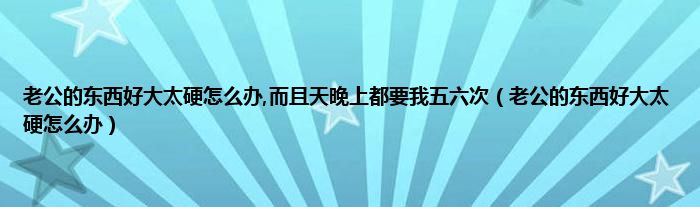 大家好,精选小编来为大家解答以上问题。老公的东西好大太硬怎么办,而且天晚上都要我五六次,老公的东西好大太硬怎么办很多人还不知道,现在让我们一起来看看吧!