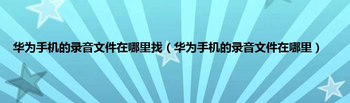华为手机的录音文件在哪里找(华为手机的录音文件在哪里)