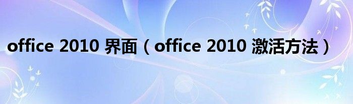 大家好,精选小编来为大家解答以上问题。office 2010 界面,office 2010 激活方法很多人还不知道,现在让我们一起来看看吧!