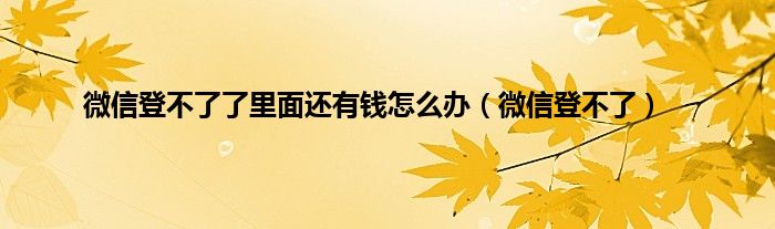 微信登不了了里面还有钱怎么办(微信登不了)