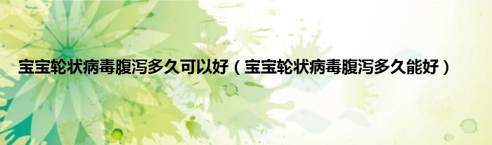 大家好,小科来为大家解答以上问题。宝宝轮状病毒腹泻多久可以好,宝宝轮状病毒腹泻多久能好很多人还不知道,现在让我们一起来看看吧!