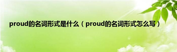 大家好,小常来为大家解答以上问题。proud的名词形式是什么,proud的名词形式怎么写很多人还不知道,现在让我们一起来看看吧!