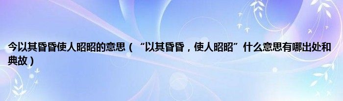 大家好,小常来为大家解答以上问题。今以其昏昏使人昭昭的意思,“以其昏昏,使人昭昭”什么意思有哪出处和典故很多人还不知道,现在让我们一起来看看吧!