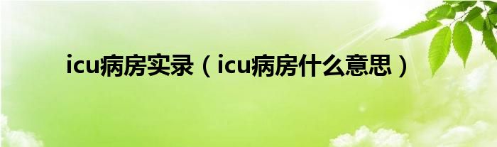 大家好,小常来为大家解答以上问题。icu病房实录,icu病房什么意思很多人还不知道,现在让我们一起来看看吧!