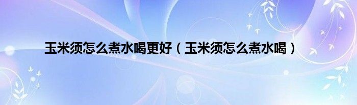 大家好,小常来为大家解答以上问题。玉米须怎么煮水喝更好,玉米须怎么煮水喝很多人还不知道,现在让我们一起来看看吧!