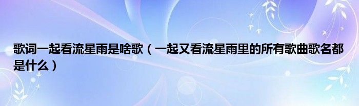 大家好,小常来为大家解答以上问题。歌词一起看流星雨是啥歌,一起又看流星雨里的所有歌曲歌名都是什么很多人还不知道,现在让我们一起来看看吧!