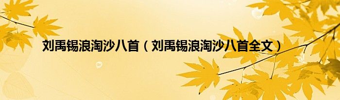 大家好,小常来为大家解答以上问题。刘禹锡浪淘沙八首,刘禹锡浪淘沙八首全文很多人还不知道,现在让我们一起来看看吧!