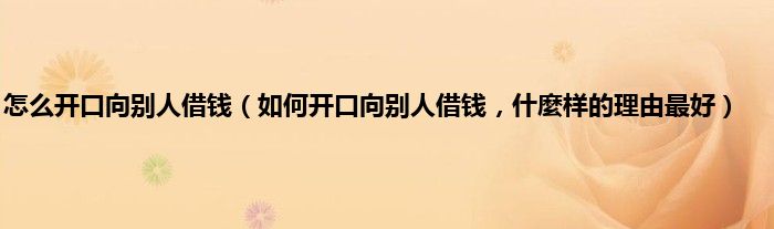 大家好,小常来为大家解答以上问题。怎么开口向别人借钱,如何开口向别人借钱,什麼样的理由最好很多人还不知道,现在让我们一起来看看吧!