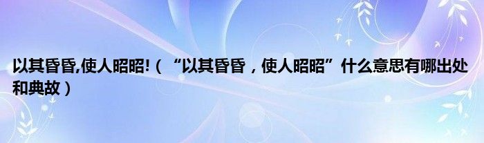 大家好,小常来为大家解答以上问题。以其昏昏,使人昭昭!,“以其昏昏,使人昭昭”什么意思有哪出处和典故很多人还不知道,现在让我们一起来看看吧!