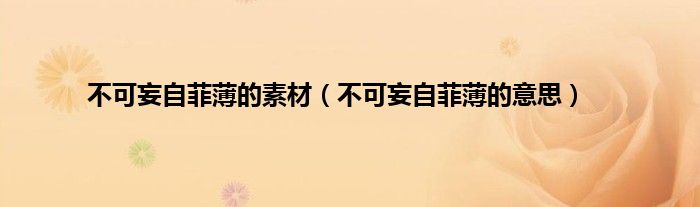 大家好,小常来为大家解答以上问题。不可妄自菲薄的素材,不可妄自菲薄的意思很多人还不知道,现在让我们一起来看看吧!
