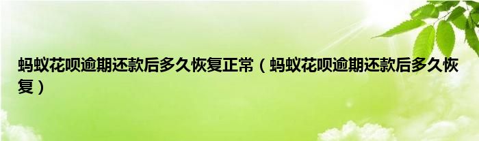 大家好,小常来为大家解答以上问题。蚂蚁花呗逾期还款后多久恢复正常,蚂蚁花呗逾期还款后多久恢复很多人还不知道,现在让我们一起来看看吧!