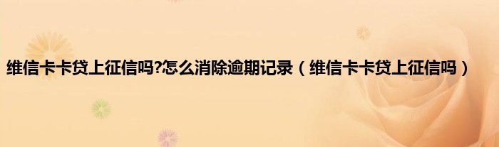 大家好,小常来为大家解答以上问题。维信卡卡贷上征信吗?怎么消除逾期记录,维信卡卡贷上征信吗很多人还不知道,现在让我们一起来看看吧!