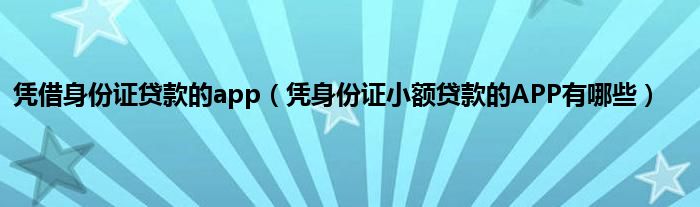 大家好,小常来为大家解答以上问题。凭借身份证贷款的app,凭身份证小额贷款的APP有哪些很多人还不知道,现在让我们一起来看看吧!
