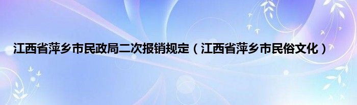 大家好,小常来为大家解答以上问题。江西省萍乡市民政局二次报销规定,江西省萍乡市民俗文化很多人还不知道,现在让我们一起来看看吧!