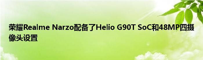 有一个16MP前置摄像头,可以自拍。在引擎盖下,Realme Narzo由八核联发科技Helio G90T SoC供电,并配有4GB RAM和64GB板载存储,可通过microSD卡进一步扩展。它还具有侧面安装的指纹传感器。该设备从一个4,300mAh电池汲取能量,该电池支持30W快速充电。与往常一样,它将在基于最新Android 10操作系统的Realme UI上启动。
