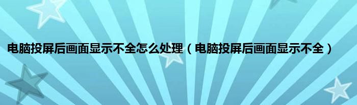 大家好,小常来为大家解答以上问题。电脑投屏后画面显示不全怎么处理,电脑投屏后画面显示不全很多人还不知道,现在让我们一起来看看吧!