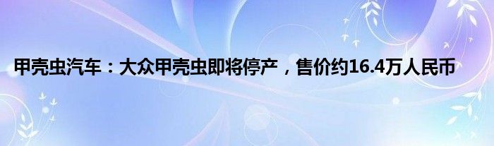 今天来分享一篇个人对甲壳虫汽车:大众甲壳虫即将停产,售价约16.4万人民币相关分析,众所周知,无论是在坊间民众,还是在汽车媒体的议论中,都是不错的,至于产品到底香不香,通过测试还是可以对甲壳虫汽车:大众甲壳虫即将停产,售价约16.4万人民币的产品力分析分析的,一起来看看吧: