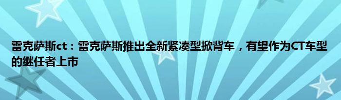 编辑近期得知,雷克萨斯将于2021年推出一款全新紧凑型掀背车,并有望作为CT车型的继任者上市销售。