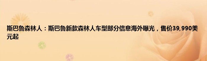 今天来分享一篇个人对斯巴鲁森林人:斯巴鲁新款森林人车型部分信息海外曝光,售价39,990美元起相关分析,众所周知,无论是在坊间民众,还是在汽车媒体的议论中,都是不错的,至于产品到底香不香,通过测试还是可以对斯巴鲁森林人:斯巴鲁新款森林人车型部分信息海外曝光,售价39,990美元起的产品力分析分析的,一起来看看吧:
