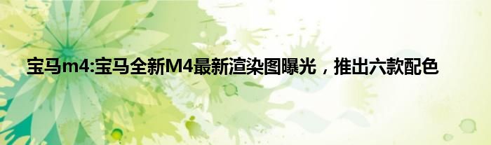 今天来分享一篇个人对宝马m4:宝马全新M4最新渲染图曝光,推出六款配色相关分析,众所周知,无论是在坊间民众,还是在汽车媒体的议论中,都是不错的,至于产品到底香不香,通过测试还是可以对宝马m4:宝马全新M4最新渲染图曝光,推出六款配色的产品力分析分析的,一起来看看吧: