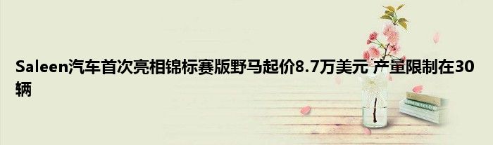 通用轮胎限量版萨林野马将于今年9月开始生产。 特别版Saleen将于本月首次公开亮相,但尚未确定确切日期。 就目前而言,我们只会祈祷希望一切顺利。