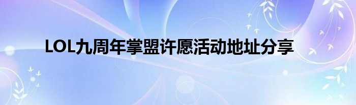 LOL今年是九周年,然后推出了不少福利活动,相信很多玩家都很感兴趣吧,其中就有一个掌盟许愿活动,这个活动呢,大家参加活动,有概率实现愿望哦,那么,LOL九周年掌盟许愿活动地址是什么?怎么参加活动呢,很多玩家都不是很清楚,接下来小编为大家带来一篇LOL九周年掌盟许愿活动地址一览。