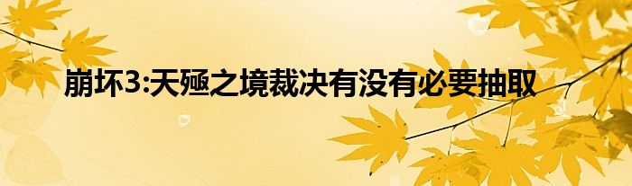 小编今天给各位玩家朋友们带来的是崩坏3:天殛之境裁决有没有必要抽取,有记得的玩家朋友吗?不记得也没有关系,小编已经帮助大家把崩坏3:天殛之境裁决有没有必要抽取找了出来,你只需要动动你的小手就可以轻松知道啦,快来瞧一瞧吧。