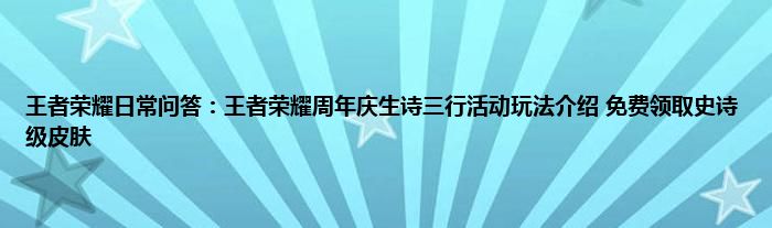 以上就是王者荣耀日常问答:王者荣耀周年庆生诗三行活动玩法介绍,免费领取史诗级皮肤的推荐,相信通过王者荣耀日常问答:王者荣耀周年庆生诗三行活动玩法介绍,免费领取史诗级皮肤这篇文章能帮到你,也欢迎对游戏很感兴趣小伙伴们一起来探讨。