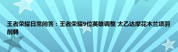 今天来聊聊关于王者荣耀日常问答:王者荣耀9位英雄调整,太乙达摩花木兰项羽削弱的文章,游戏是很多人的选择,但是游戏玩多了也会身心疲惫,现在就为大家来简单介绍下王者荣耀日常问答:王者荣耀9位英雄调整,太乙达摩花木兰项羽削弱,希望对各位小伙伴们有所帮助。