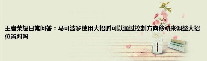问题:马可波罗使用大招时,可以通过控制方向移动来调整大招位置