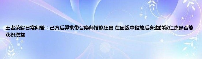 问题:己方后羿携带召唤师技能狂暴,在团战中释放后,身边的狄仁杰是否能获得增益?